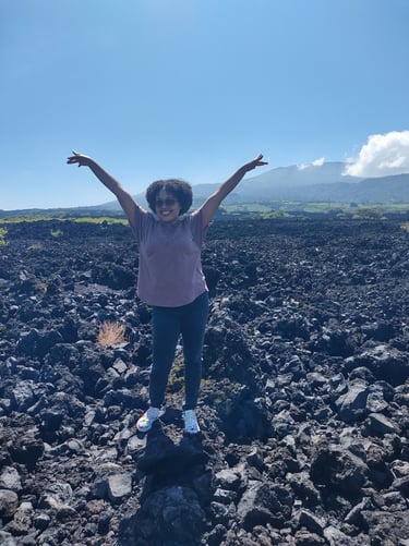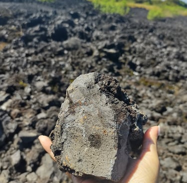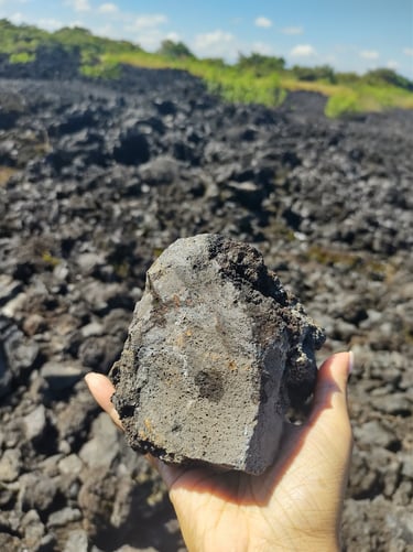 La lava se convierte en algo parecido a rocas y se queda ahí, inmóvil, como testigo de lo que un día fue. Todo el paisaje parece hecho de montañas de piedra. ¡Incluso me traje una de recuerdo!